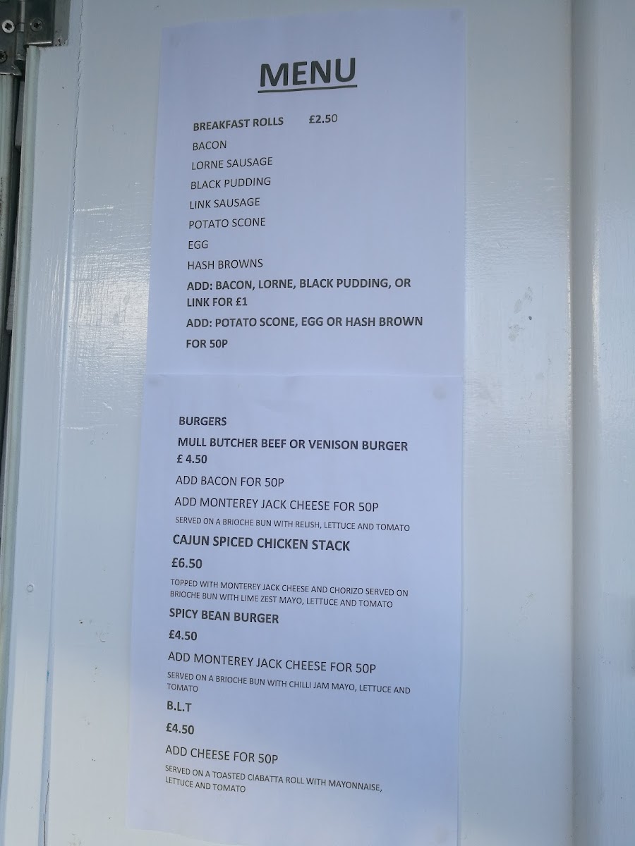 Welcome to Fishnish Food Bar, a delightful gem located at the Ferry Terminal on the stunning Isle of Mull. This charming cafe is the perfect pit stop for travelers and locals alike. The menu shines with a variety of hearty options, featuring mouthwatering burgers made from Mull Butcher beef or venison, delectable Cajun spiced chicken, and enticing vegetarian choices like the spicy bean burger.